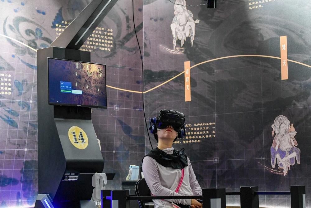 2024年7月22日,旅客正在“寻境敦煌——数字敦煌沉浸展”借帮VR设备沉浸式旅逛莫高窟第285窟虚拟场景。“寻境敦煌——数字敦煌沉浸展”分析使用VR虚拟现实、三维建模、逛戏引擎的物理衬着和全局动态光照等新手艺,高精度立体还原了莫高窟第285窟。旅客戴上VR眼镜,不只能够零距离抚玩壁画、360度摸索洞窟细节,还能“飞升”到窟顶,设身处地参取壁画故工作节,沉浸式感触感染敦煌文化的魅力。