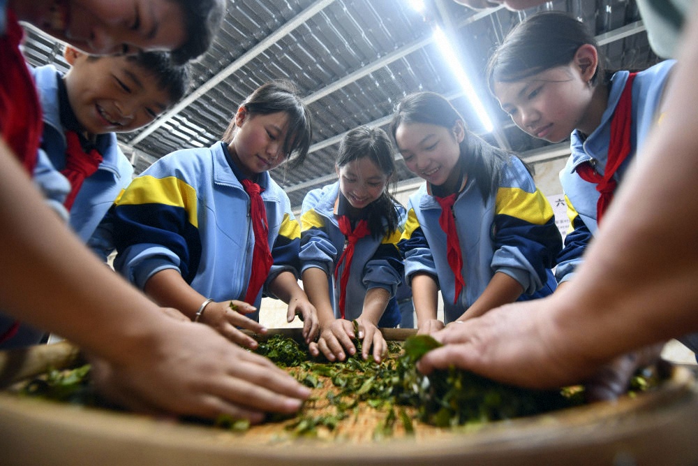 2024年12月3日,学生们正在广西梧州市苍梧县六堡镇塘平小学进修制做六堡茶。广西六堡茶已有1500多年的汗青,其制做工艺被列入第四批国度级非物质文化遗产代表性项目名录。近年来,广西环绕打制千亿元茶财产成长方针,深切实施绿色高效茶园扶植、品牌提拔和营销系统扶植、财产融合和茶文化提拔等多项工程,构成了以六堡茶为引擎,初春茶等特色劣势茶协同成长的财产款式,茶财产焕发勃勃朝气。六堡茶正沿21世纪海上丝绸之运达八方,喷鼻飘。2024年,广西六堡茶产量达到4。3万吨,分析产值超300亿元。