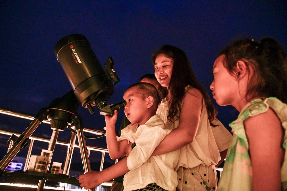 2025年7月9日,旅客正在贵州省平塘县克度“天文小镇”通过千里镜不雅测星空。近年来,跟着旅逛设备逐步完美,距离“中国天眼”仅8公里的克度“天文小镇”通过“科普+文旅”成长模式,带动村平易近就业创业、增收致富。2025年1月至6月,“中国天眼”景区共欢迎旅客约38万人次,总收入2496万余元。